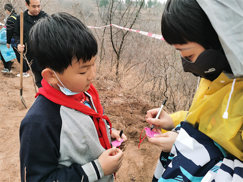 種下一棵綠樹,就是種下一份希望。經(jīng)過大家的辛勤勞作,大家圓滿完成植樹任務(wù),一顆顆樹苗迎風(fēng)而立,為紅葉谷增添了絲絲綠意,帶來了勃勃生機(jī)。大家紛紛在卡片上寫下美好心愿,懸掛在自己種的樹上,祈福未來,祝愿美好,讓今天的一切變得更有意義。大家一起為本次植樹的區(qū)域取名為“銀豐公益林”。